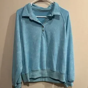 Stay cozy and stylish with this blue pullover top. Perfect for casual outings.