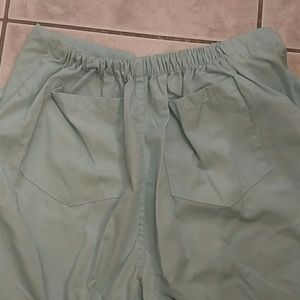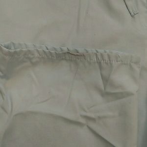 Worn once or twice . The black line in the last picture of the top is a piece of black string sewed in when it was manufactured (not a stain or a rip). The pants (sorry for the lighting) have discoloring on the right bottom hem from stepping on them and there's a small stain (of it looks like dirt, haven't tried to get it out) on the back of the left leg (see picture). I also cut the tag off of the pants