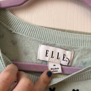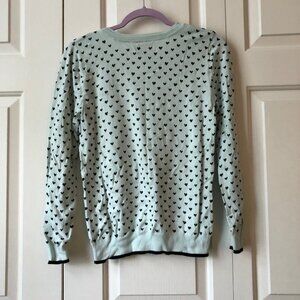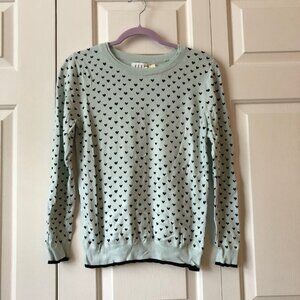 Pretty light weight blue sweater with a tiny double collar and black tipped sleeves