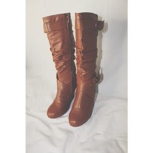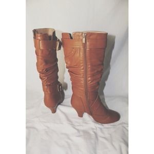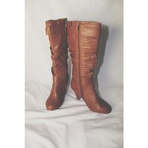it's actually more of a chestnut color // it has heels // zipper on the side // worn once then I forgot about it and I don't fit it anymore // in perfect condition