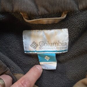 Columbia jacket with light grey collar. Please see pics for some tiny holes/spots.
