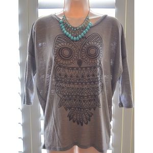 Light brown top with cute Owl print • very cute for a casual day • Sorry No trades