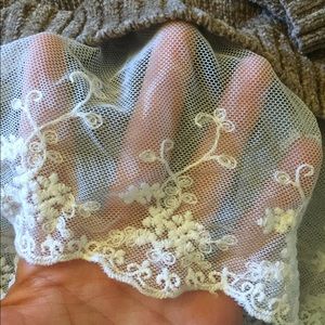 Light brown sweater with lace trim
