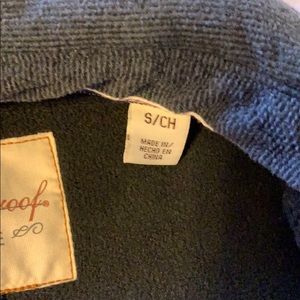 Fleece like material on the inside , corduroy look on the outside. Black/blue material