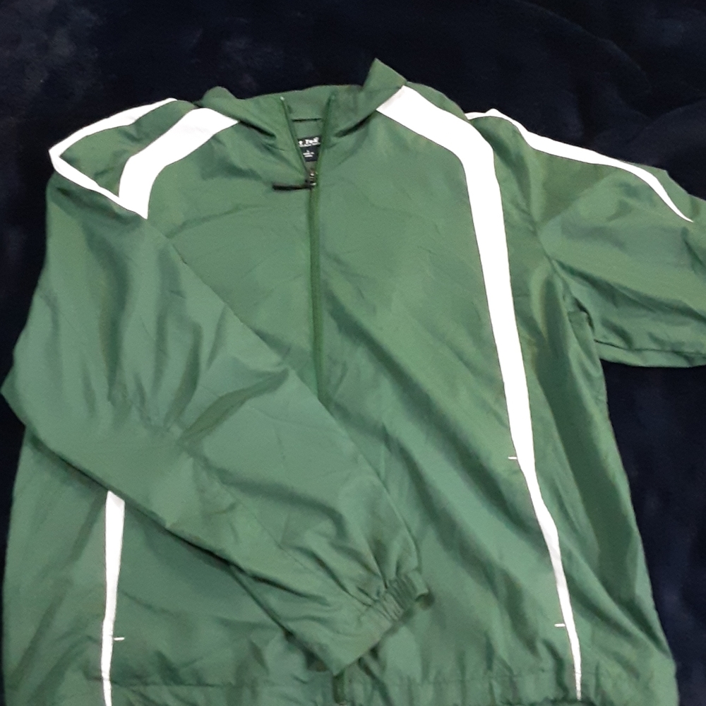 Spartans green and white light wind breaker. Polyester with ultra soft cotton liner