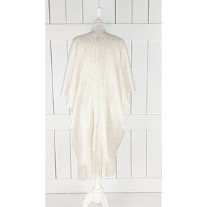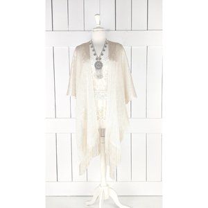 Light gold metallic mesh kimono cover up fringe jacket