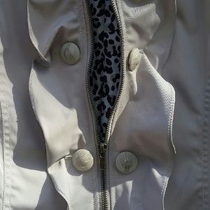 This jacket is super cute and fits great in all the right places. It is slightly lined, has all the buttons, and a great length. The ruffles make it super girly!