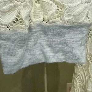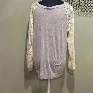 Light gray sweatshirt like top with lace accent sleeves- Size Large