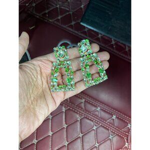 Light green earrings, peridot lime gold crystal rhinestone large big earrings