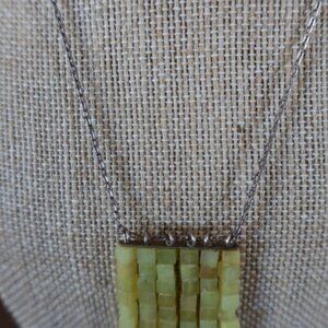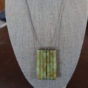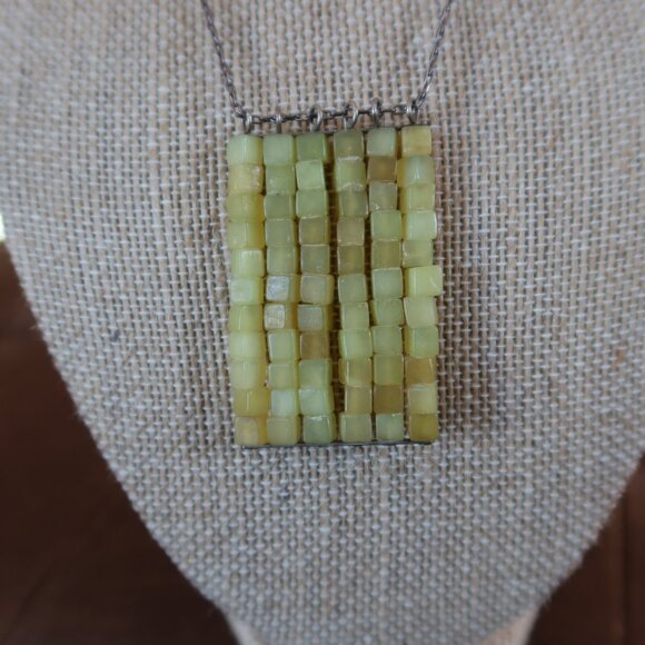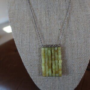 Gorgeous large rectangle pendant with square light green jade (not sure if real or faux but designer called them jade?) beads on a sterling silver chain with extender to alter the length