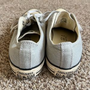 Light grey Converse shoes. No rips or tears, just needs a good cleaning on rubber parts. Size 11 in womens/9 in mens.