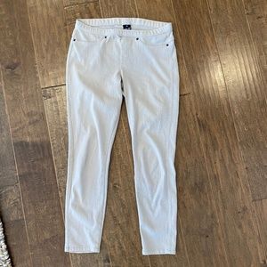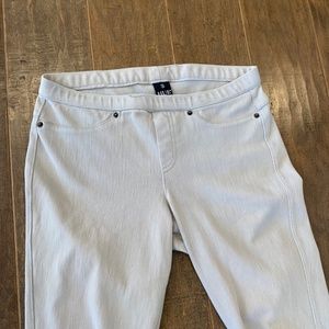 Light grey HUE jeggings, crop length, size small. Slim fit with elastic waist.