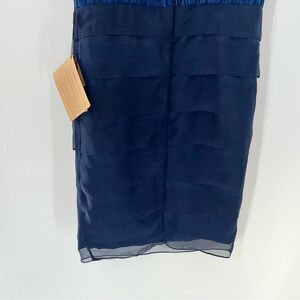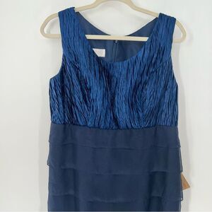 NWT Light in the Box Formal Deep Blue Sleeveless Dress w/Tiered Skirt Textured Crimped Bodice. Invisible zipper in the back. Fully lined. No size or materials tags. Size based on measurements.