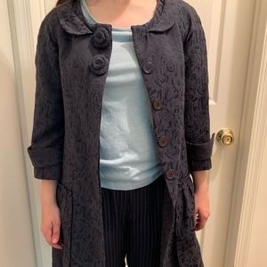 Dark blue jacket, light + long, flower pattern, excellent condition