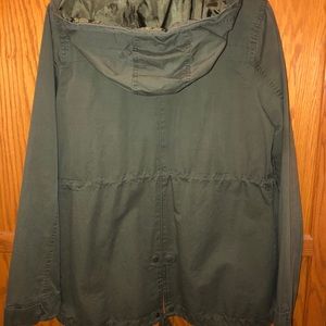 Super nice fall or spring light jacket! Zipper is good, all buttons work! Has a nice hood!
