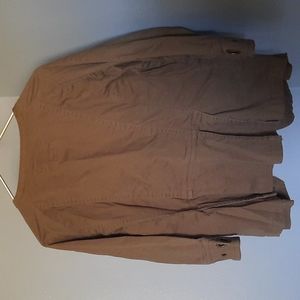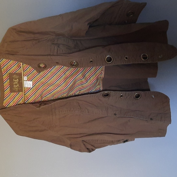 khaki green jacket, size 1x, big eyelets. looks great with jeans or skirt