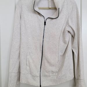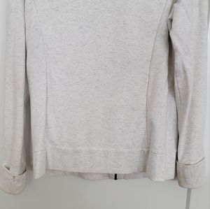 light jacket, white with grey specks, fur collar. good condition