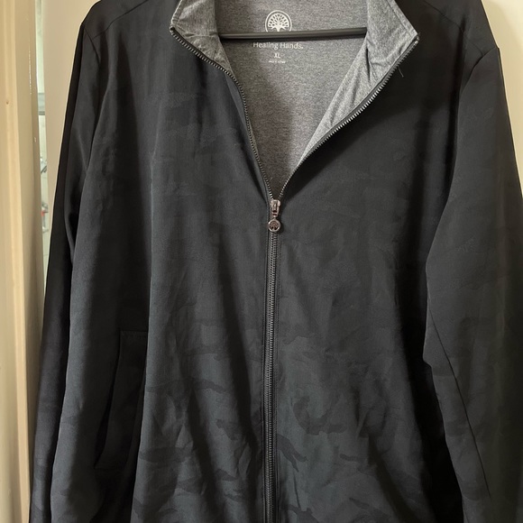 Light lined jacket with black camo design. Bought for work but never worn.