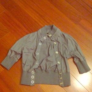 Charcoal gray. Quarter sleeve. Very light, you can dress it up or dress it down. Only worn once or twice so very good condition
