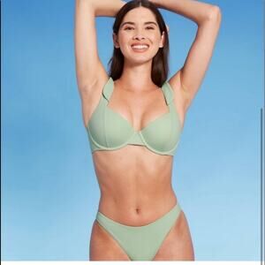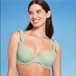 Light lift shoulder tie bikini top Shade & Shore 34D light green NWT