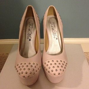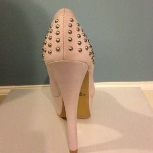 These shoes are women's size 5 and 1/2, they have had little to no use! Just too small for me! Light pink coloring with silver studs
