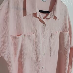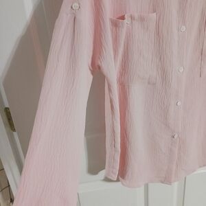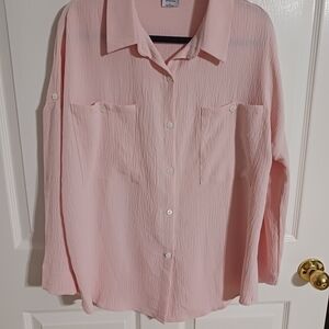 Light pink Cozy Co. by Cozy Casual button front blouse with rolled sleeves size