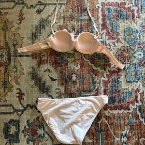 Light pink bikini top from H&M size 34A and bikini bottoms from Xhilaration size medium. Matches perfectly!