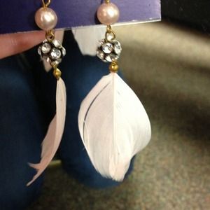 Never worn! Adorable faux pink pearl, rhinestone, and feather gold earrings. Look cute with anything!
