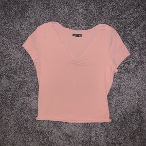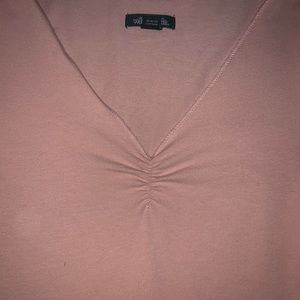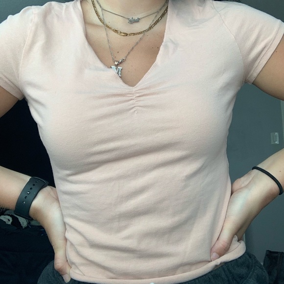 Light pink colored top. Fitted and has cute detail on chest. Worn a few times, in good condition