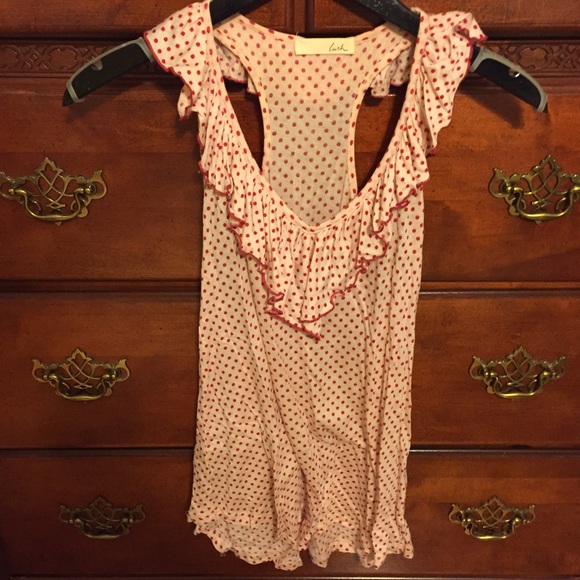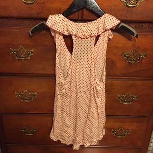 Thin pink polka dot ruffle tank. Great paired with jackets and sweaters! Originally purchased at Nordstrom's.