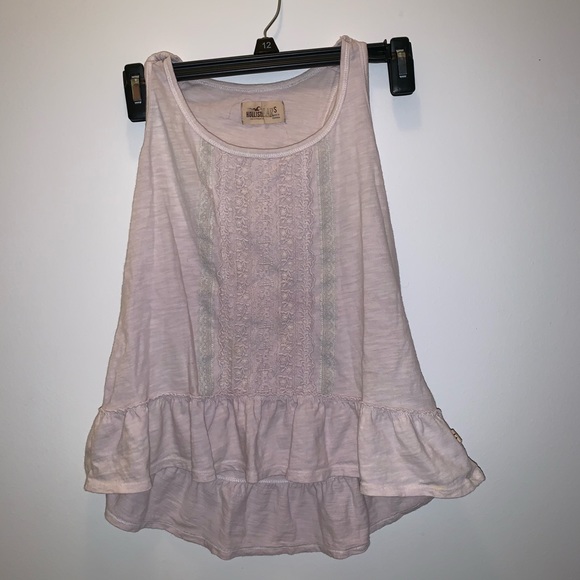Light pink tank top with flower textured design and white stripes. Babydoll flare out. Racerback. Hollister
