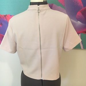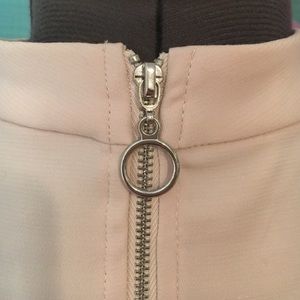 Beige/pink crop top with a zipper the length of the back, two working front pockets