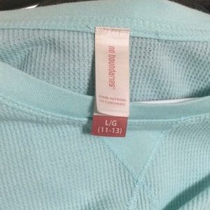 Large 11-13 sweater, the cover photo is similar to the color of the sweater. Wore a couple of times. It has a small stain on the left sleeve but is barely noticeable and does not affect wear.