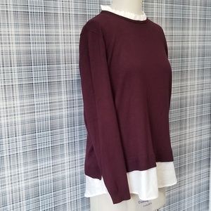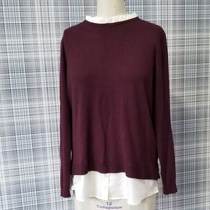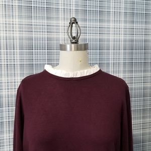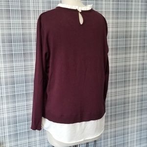 Burgundy light sweater with collar and hem. Size says XL but beware, it is not a US XL, more like an M/L