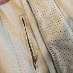 Leather like (not stiff super soft) jacket that crosses over and zips. Love the jacket I purchased from another posher but I have only worn it once myself and just received a new coat for Christmas!