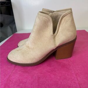 Light tan suede wedge heels, size 9. Mild wear to top of toes as pictured