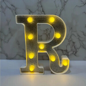 Light up Marquee Style Letter R White & Silver Decorative Glam Decor