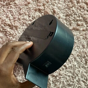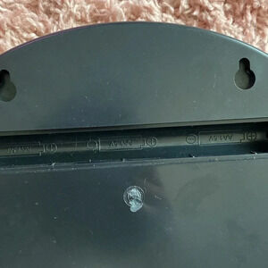 Some flaws but not noticeable when hung up. Takes three double a batteries. Fully functions
