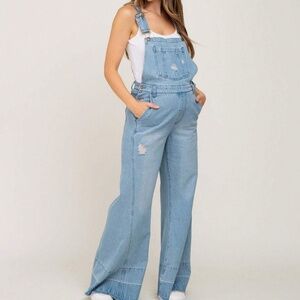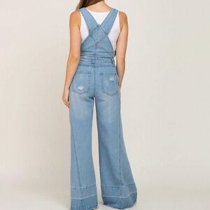 Light wash Wide leg Pockets Bib Jumpsuit