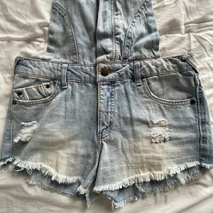 Light wash denim , short overalls