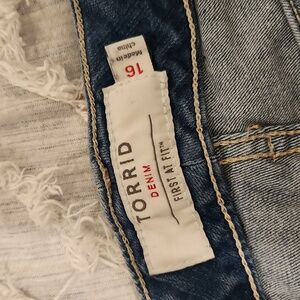 Light wash, distressed Torrid jean shorts size 16! Excellent condition!