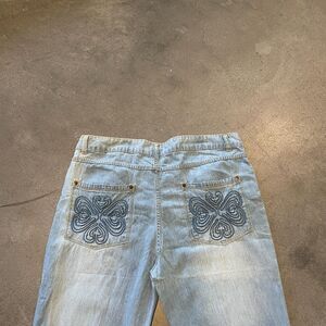 Size 14. Dark embroided back pockets.