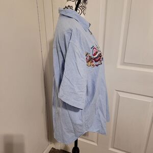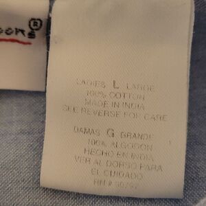 Really cute top. Has embroidered design of watering cans, birds and butterflies. Made with all cotton materials. Tag says size large.