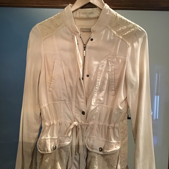 Blush colored light weight jacket zip & drawstring tie