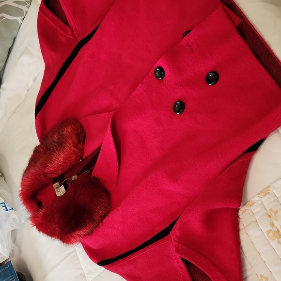 absolutely beautiful shirt waist sweater/coat.NWOT. detachable fur collar. Show stopper.will fit sm./med
