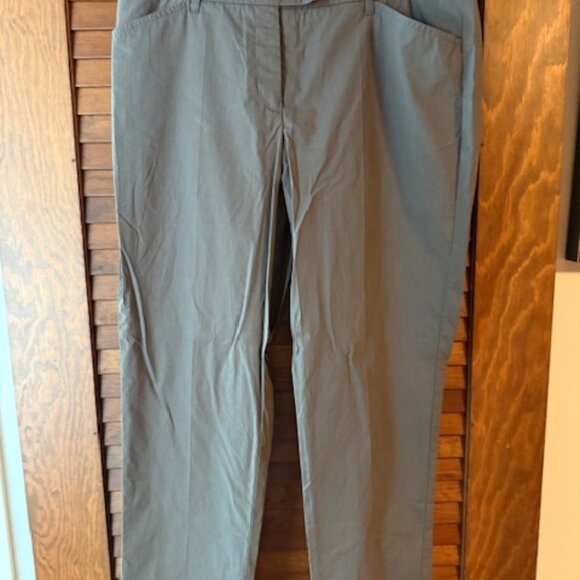 Olive color, slight cuff, feather light material. Tags not attached but never worn. Runs slightly small.