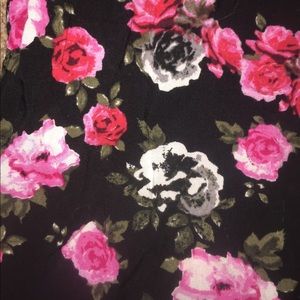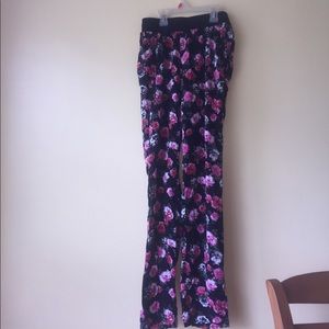 These are long joggers with a flowered pattern and they have 1 pocket on each side in the front