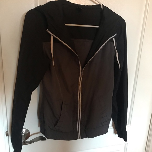 Black and dark gray wind breaker. Lightweight. Smoke free home
