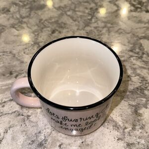 Celebrate a special engagement with this charming light pink coffee mug, featuring the playful phrase “Does this ring make me look engaged?” This mug is perfect for the newly engaged, adding a touch of joy and a lot of smiles to their morning coffee or tea routine. Its delightful design makes it a great engagement gift or a sweet personal keepsake.