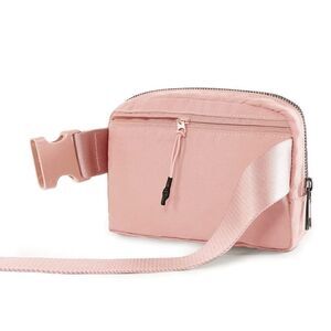 New belt bag with adjustable strap. Bag size is 8x5.5” and straps can go from 22-40” in length.